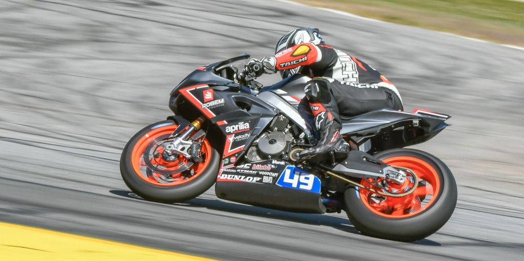 BRASELTON, Ga. — Saturday afternoon, the Robem Engineering team was celebrating the triumphant debut of the Aprilia RS 660 in MotoAmerica Twins Cup competition. About 24 hours later, the team’s three riders were unable to finish Sunday’s Twins Cup contest, as Kaleb De Keyrel, Hayden Schultz and Toby Khamsouk all crashed out of the race at the start of Lap 8.